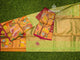 Pastel pink zarikota saree with silver motifs and a contrast parrot green border. Comes with a contrast yellow and parrot green coloured blouse.